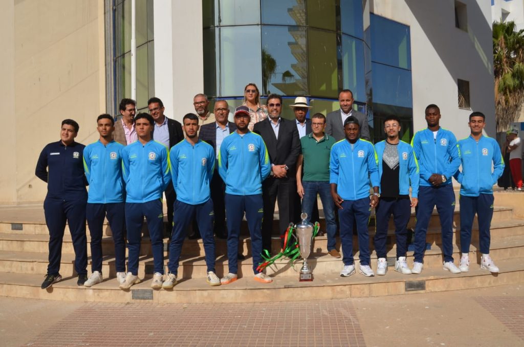وقد خصهم رئيس الجهة بدرع تكريمي عربون قيمة الإنجاز الرياضي المتمتل في الفوز ببطولة القسم الأول و الصعود للقسم الممتاز وحضر هذا الاستقبال إلى جانب بعض أعضاء مجلس الجهة رئيس الكونفدرالية العامة لمقاولات المغرب فرع جهة سوس ماسة