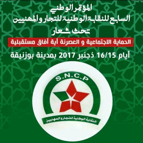 تستعد النقابة الوطنية للتجار و المهنيين بالمغرب SNCP عقد مؤتمرها السابع ايام 15 و 16 دجنبر 2017 بمركز مولاي رشيد للشباب و الطفولة بمدينة بوزنيقة تحت شعار “الحماية الاجتماعية و العصرنة، آية آفاق مستقبلية؟” ودلك بعد استكمال جميع الترتيبات اللازمة من انتداب المؤتمرين الى جانب توفير اللوجيستيك الخاص لانجاح المؤتمر الدي ستفتتح أشغاله زوال يوم الجمعة 15 دجنبر 2017 بالمركب الثقافي المهدي بنبركة بمدينة الرباط.