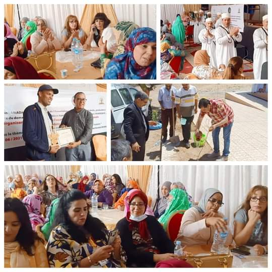 نظم حفل التكريم من طرف النسيج الجمعوي المكون من جمعية مسكينة لذوي حقوق أركان فرع الدراركة و الجمعية الإقليمية لذوي الحقوق منتجي ومستغلي مجال أركان بعمالة أكادير إدا وتنان بمناسبة اليوم العالمي لشجرة أركان وتحت شعار: “المحافظة على شجرة الأركان واجب وطني وإنساني” والذي نظم يوم السبت 2021/06/19 بمقر تعاونية تغانمين، مناسبة سانحة للحضور الوازن لنساء المحلية التجمعية بأكادير، والذي تمثل بجانب الفعاليات الحاضرة في حضور الأستاذة الزهرة المنشودي رئيسة المحلية النسائية للمرأة التجمعية لأكادير رفقة عضوات مكتب المحلية. وقد كان موضوع هذا الإحتفاء باليوم العالمي لشجرة الأركان، حيث عبر من خلاله الفعاليات الحاضرة على امتنانهم لإعتبار شجرة الأركان تراثا عالميا من لدن اليونسكو. كما تخلل الحفل فقرات فنية من تراث المنطقة وخاصة عواد مسكينة إضافة إلى أهازيج نساء التعاونية المحلية تغانمين ووقفات تكريمية للفعاليات النسائية التي تشتغل بالتعاونية وفعاليات أخرى على المستوى الإقليمي والجهوي. وجدير بالذكر أن الأستاذة نادية الفاطمي رئيسة هذه التعاونية، تعد ايضا من الفعاليات النسائية النشيطة بجانب عضوات المحلية النسائية للمرأة التجمعية. وعموما، فقد شكل هذا الحفل فرصة اللقاء وتبادل الخبرات والتواصل مع نساء منطقة مسكينة واستقطابهن للمشاركة في انجاح الإستحقاقات المقبلة.