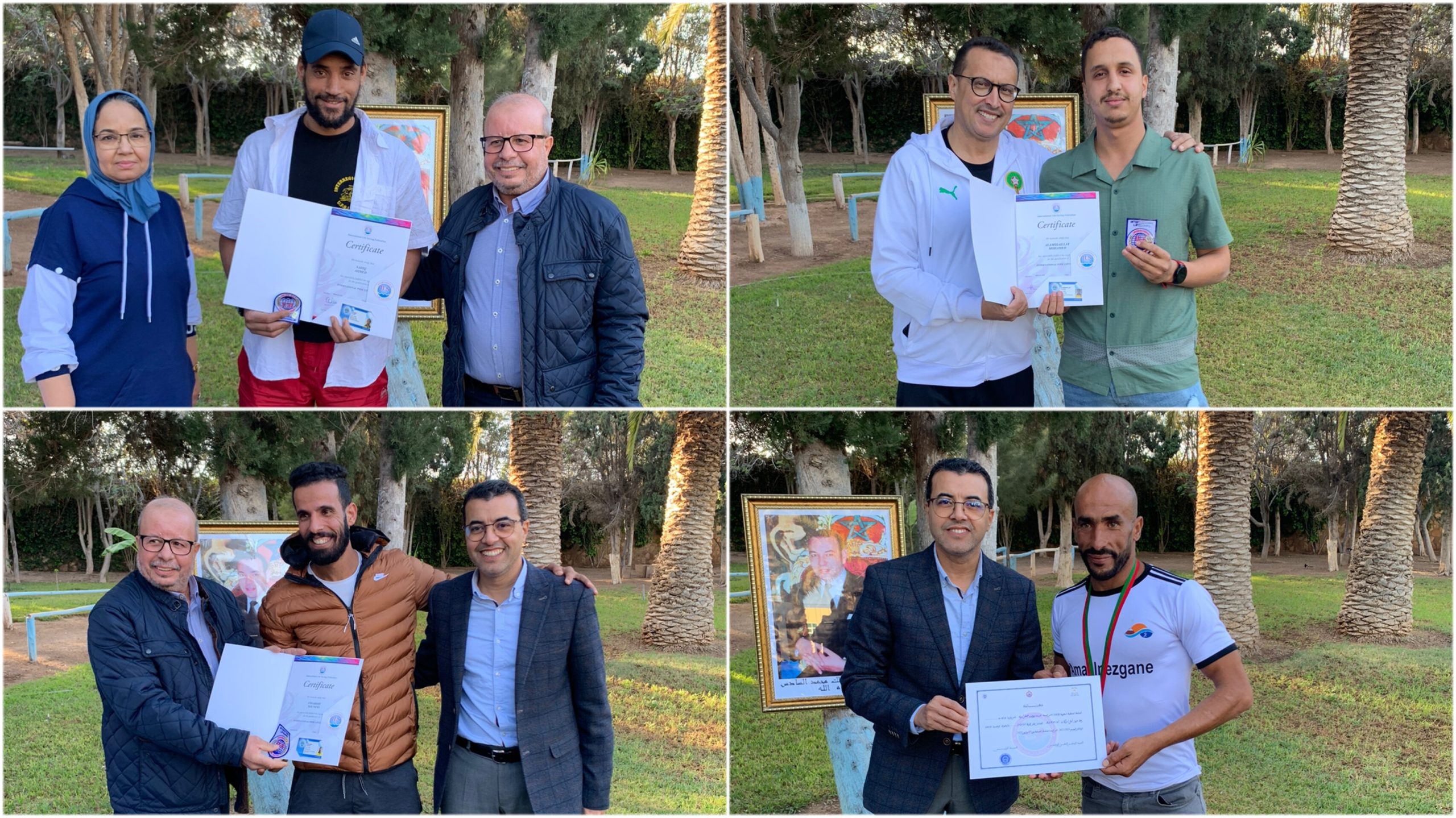وبنفس المناسبة، تم توزيع شهادات الانقاذ الدولي وشارات على الفوجين الاول والثاني وعددهم 25 منهم اربع اناث، وذلك بعد اجتياز امتحانات نظرية وتطبيقية بنجاح ولمدة ستة ايام وما يقارب خمسين ساعة في الاسبوع من العمليات المرتبطة بهذا الصنف من الرياضات.