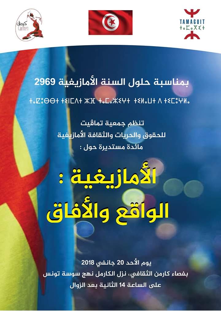 تنظم جمعية تاماكيت ندوة في موضوع “الأمازيغية : الواقع والافاق” يوم 20 يناير 2019 بالعاصمة التونسية احتفالا بحلول السنة الامازيغية الجديدة 2969. ومن المنتظر أن تشارك الجامعة الصيفية في شخص رئيسها الأستاذ الجامعي الحسين بويعقوبي في أشغال هذه الندوة، كضيف شرف لتقديم التجربة المغربية في مجال التعاطي مع المطالب الأمازيغية. كما تأتي هذه الندوة احتفالا بالذكرى 40 لتأسيس الجامعة الصيفية و تفعيلا لاتفاقية الشراكة التي تجمع الجامعة الصيفية وجمعية تاماكيت والموقعة بأكادير قبل سنتين. كما ستعرف الندوة مشاركة كل من زياد السندي و محمد فتح الله و فتحي بن معمر من تونس.
