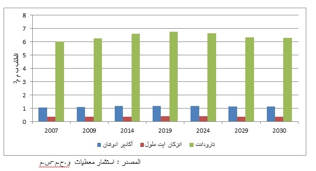 الجدول رقم1: توقع الطلب على الماء حسب القطاعات ب م م3