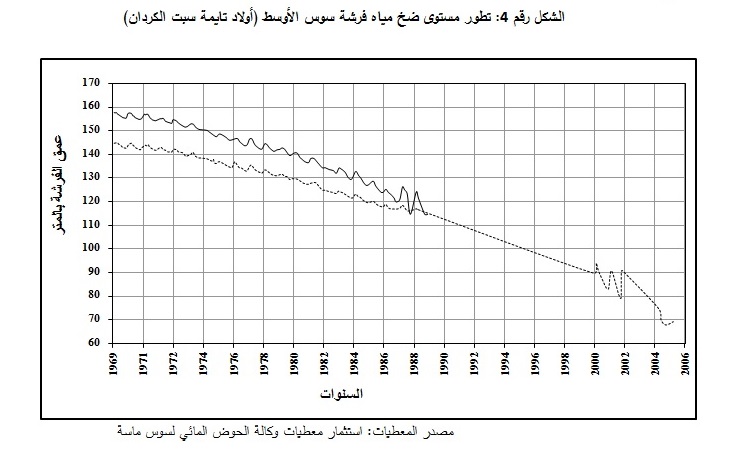 الشكل رقم 4: تطور مستوى ضخ مياه فرشة سوس الأوسط (أولاد تايمة سبت الكردان)