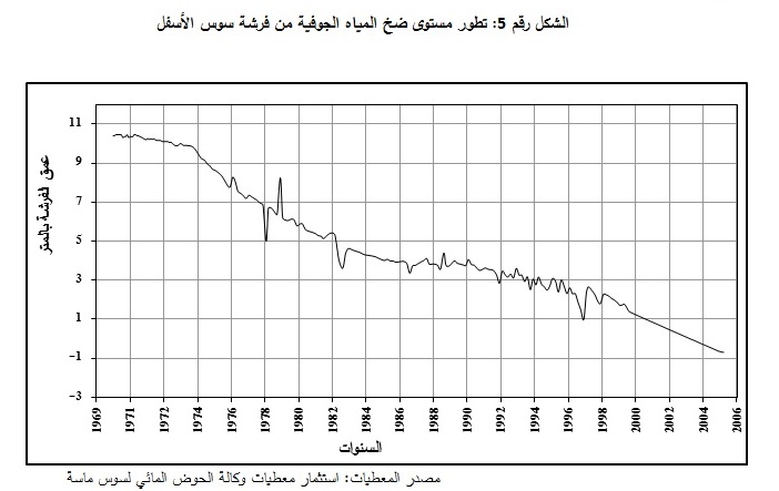 الشكل رقم 5: تطور مستوى ضخ المياه الجوفية من فرشة سوس الأسفل