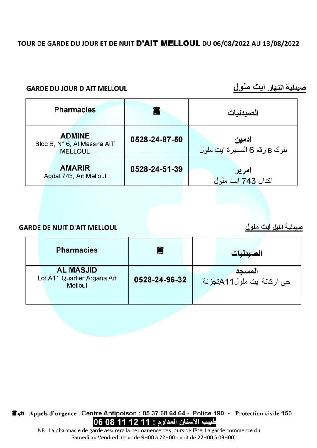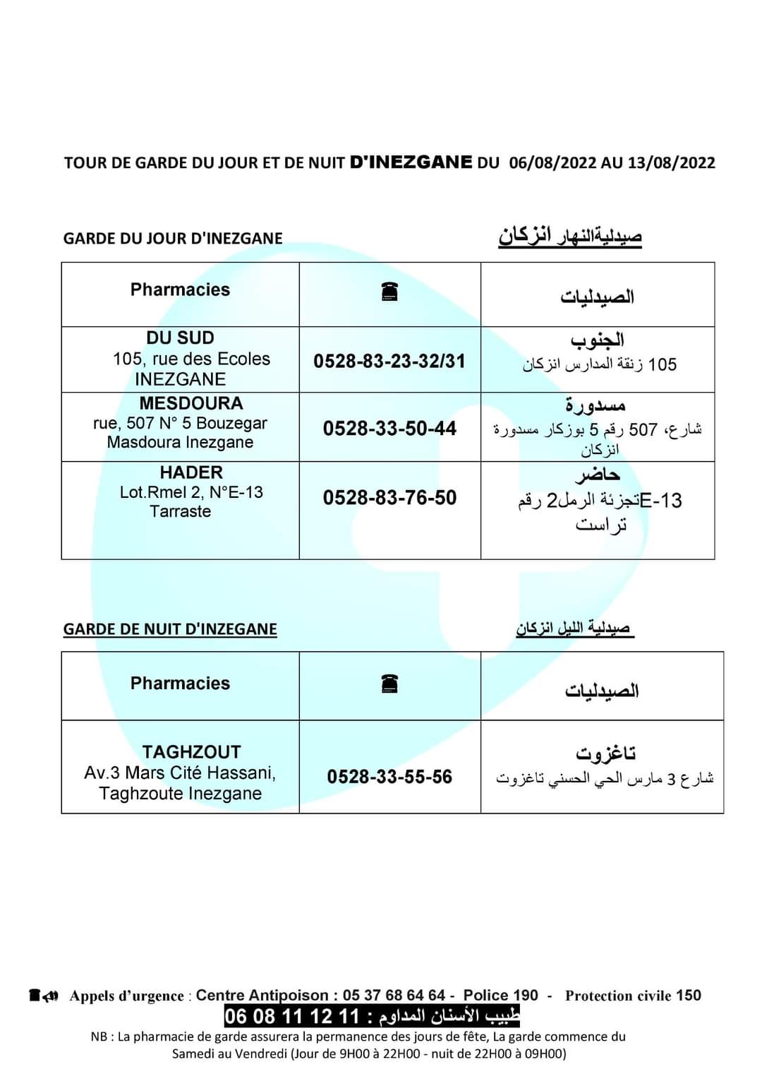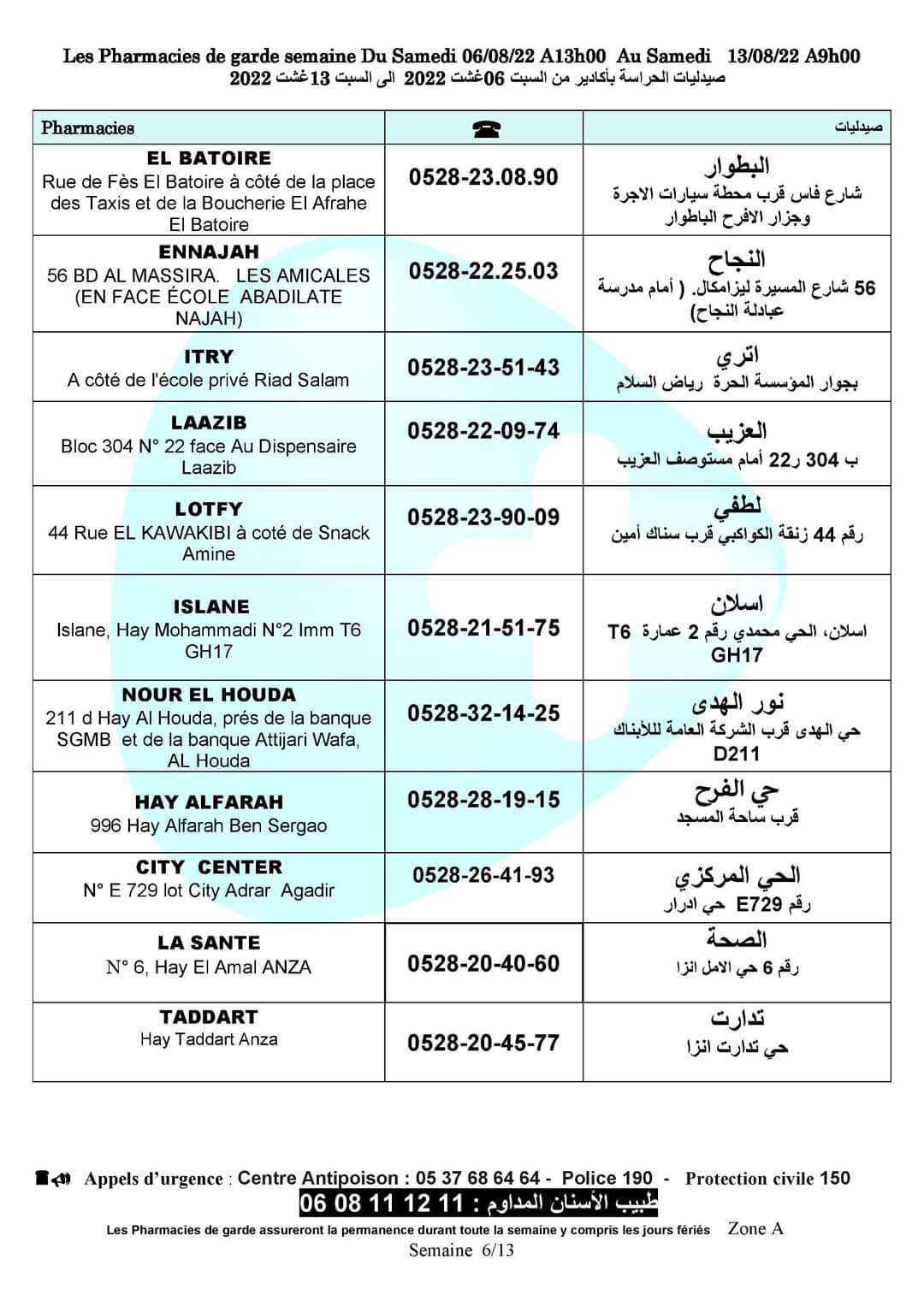 صيدليات الحراسة بأكادير الكبير لهذا الاسبوع