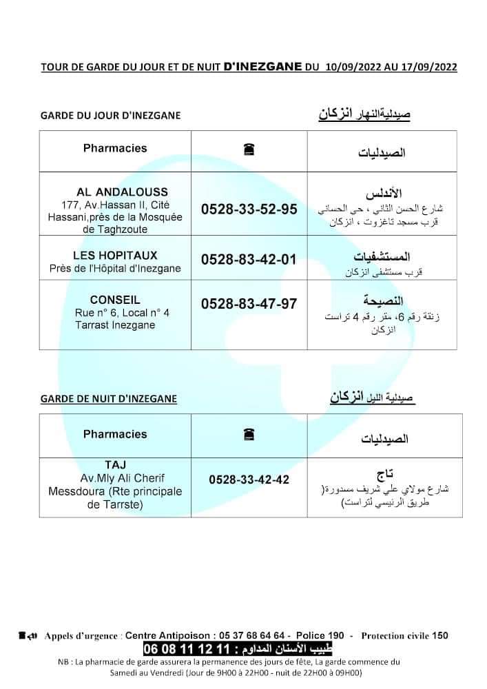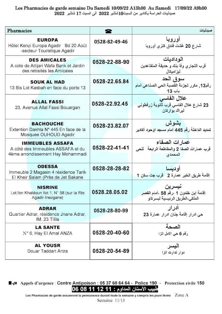 صيدليات الحراسة باكادير الكبير لهذا الاسبوع