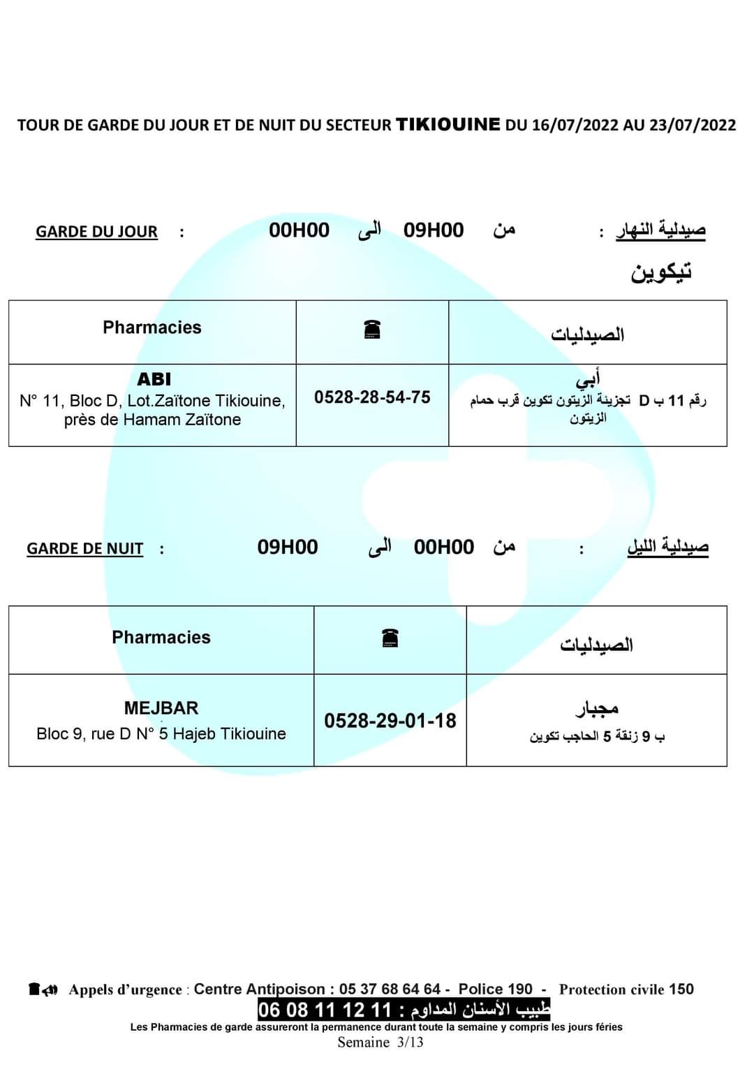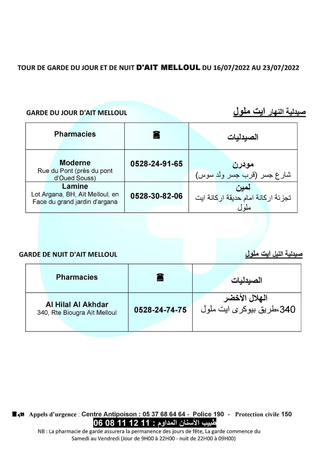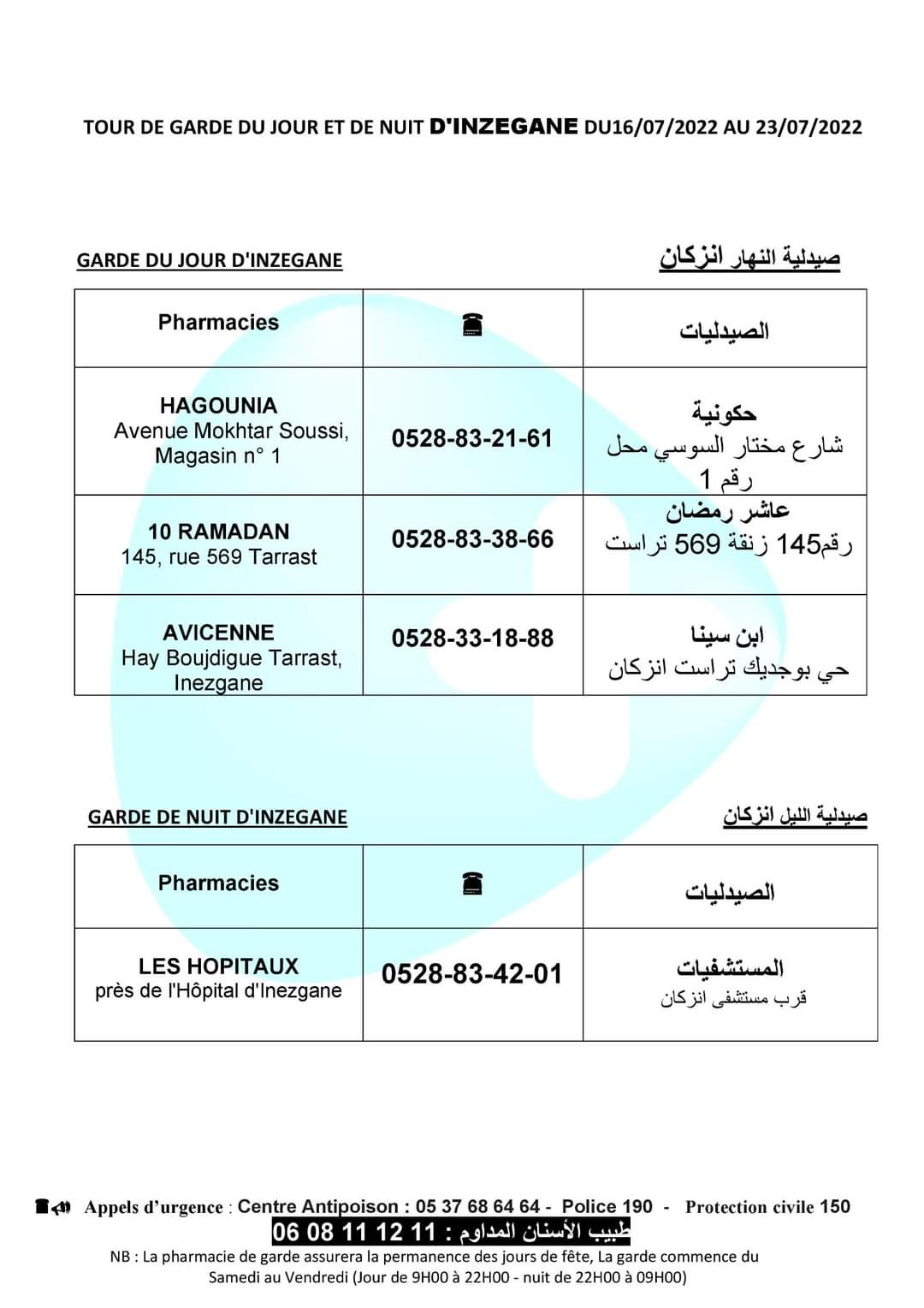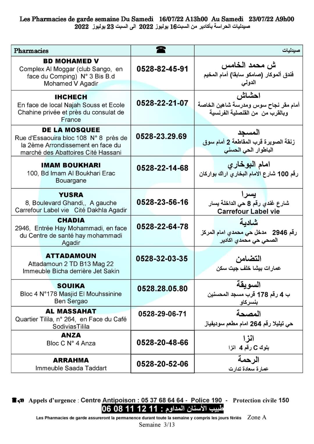 صيدليات الحراسة باكادير الكبير من السبت 16 يوليوز 2022 الى السبت 23يوليوز 2022