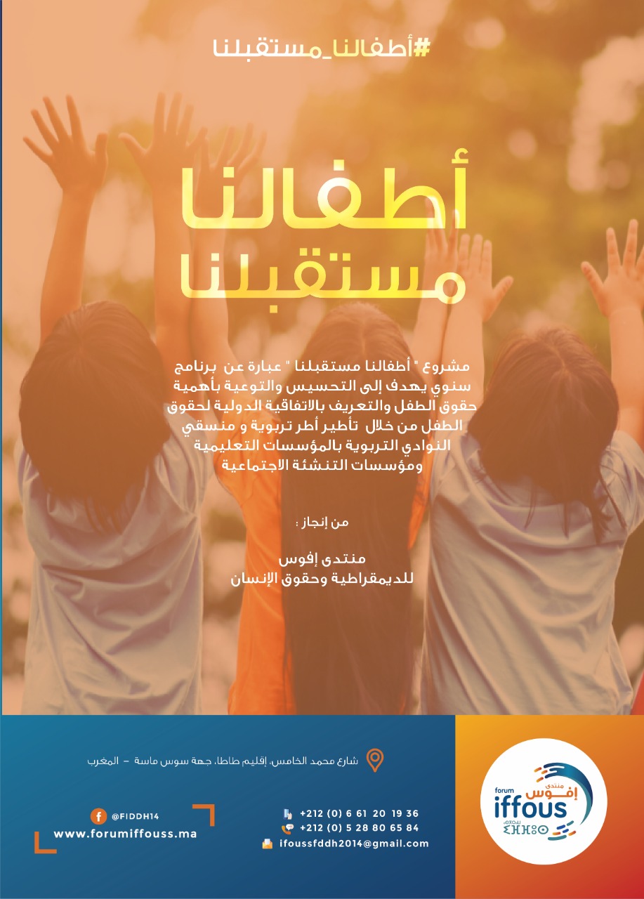 أزول بريس- في إطار مشروع “اطفالنا مستقبلنا”،نظم منتدى افوس الديمقراطية وحقوق الإنسان يوم السبت 20 فبراير 2020، 8 ورشات تحسيسية ، حول تعزيز الثقافة الحقوقية من خلال التعريف بالاتفاقية الدولية لحقوق الطفل، وآليات تدبير النزاعات ومحاربة العنف بالوسط المدرسي من تأطير أساتذة واخصائية نفسية لفائدة تلاميذ وتلميذات الثانوية التأهيلية الجديدة والثانوية التأهيلية علال بن عبدالله .