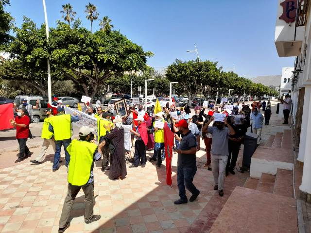 نظم مستخدمو ومستخدمات فندق موكَادوربأكَادير،وقفة احتجاجية ثالثة يوم الإثنين 19 يوليوز2021 بشارع 20 غشت بقلب المنطقة السياحية بأكَادير،تنديدا منهم على قرار الإغلاق المتخذ بشكل أحادي من قبل إدارة هذه الوحدة السياحية”موكادور”التابعة لمجموعة”هولدينغ”رجل الأعمال الراحل ميلود الشعبي.