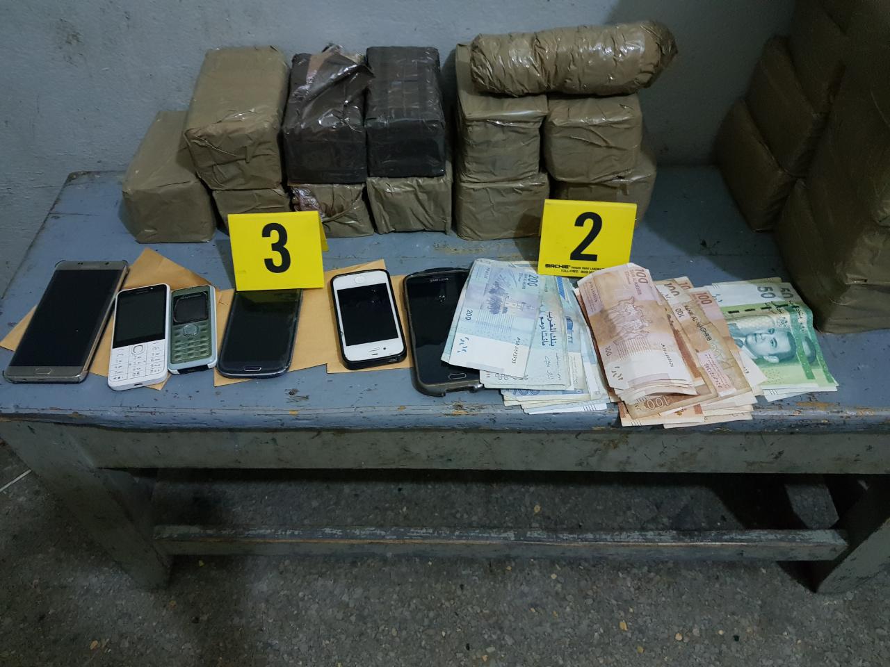 وجرى توقيف المشتبه فيهم، حسب ذات المصادر، وهم من ذوي السوابق القضائية العديدة، على متن سيارتين خفيفتين ودراجة ثلاثية العجلات بحي الزيتون بتكيوين ، والذين ضُبط بحوزتهم ما مجموعه 80 كيلوغرام من صفائح مخدر الشيرا المخبأة داخل السيارتين والمعدة للترويج، بالإضافة إلى هواتف نقالة ومبالغ مالية.
