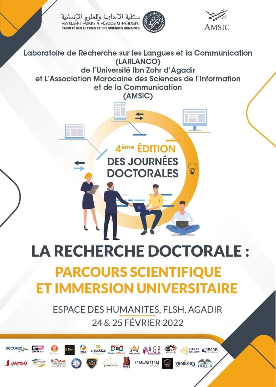 تنظم الجمعية المغربية لعلوم الإعلام والتواصل ومختبر البحث في اللغة والتواصل؛ الأيام الخاصة بالدكتوراه في نسختها الرابعة يومي 24- 25 بمدينة أكادير.