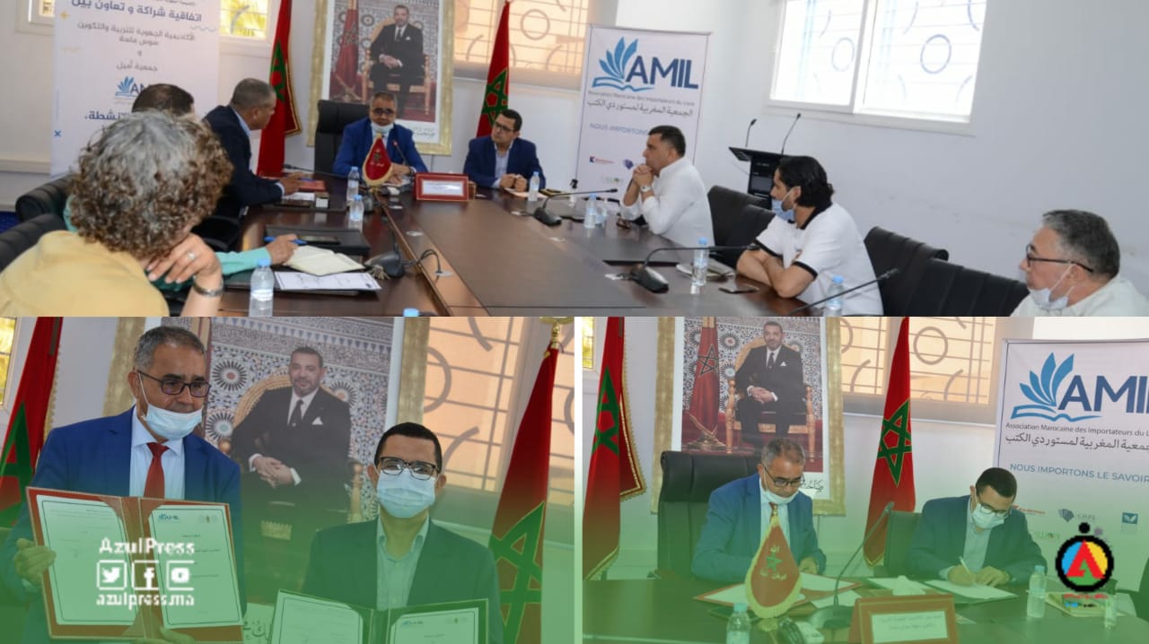 ترأس السيد محمد جاي منصوري مدير الاكاديمية الجهوية للتربية والتكوين لجهة سوس ماسة يوم الاثنين 14 يونيو 2021 مراسيم توقيع اتفاقية شراكة بين الأكاديمية الجهوية للتربية والتكوين جهة سوس ماسة و الجمعية المغربية لمستوردي وموزعي الكتاب، تهدف هذه الاتفاقية إلى المساهمة في تكوين وتأطير أساتذة مادتي اللغتين الإنجليزية والفرنسية بجميع الأسلاك التعليمية و تشجيع التلاميذ على القراءة باللغتين من خلال مجموعة من الأنشطة كتنظيم مسابقات وتظاهرات ثقافية في فن الخطابة والإملاء والمسرح المدرسي ، وفن المناظرة، بالإضافة الى تأثيث رفوف المكتبات المدرسية بعدد من المؤسسات التعليمية بالجهة .