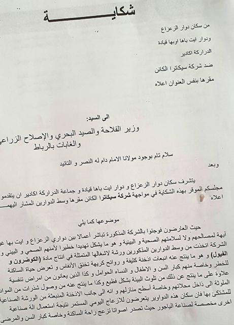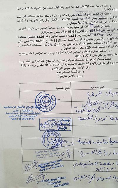 وقررت الساكنة مراسلة المسؤولين على الصعيد الوطني، لتنبيههم إلى خطورة الوضع الذي تعيشه منطقتهم قبل دخولهم في احتجاجات ضد تزايد التلوث الهواء الذي يتفاقم يوما تلو آخر.