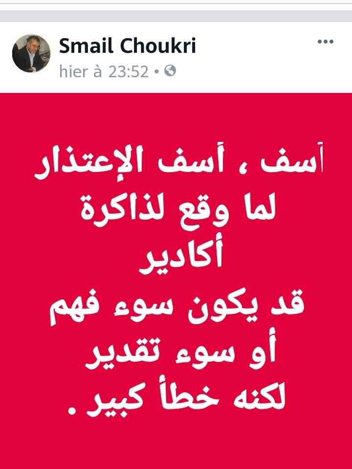 خلف قرار اقدام رئيس بلدية أكادير على تغيير معالم البناية التاريخية لقصر بلدية المدينة ردود فعل قوية ليس فقط من خارج البلدية ومن طرف السلطات العمومية بل حتى من داخل فريق البجيدي بالملجس الجماعي لأكادير حيث تأسف المسشار والبرلماني اسماعيل شكري على هذا الامر: