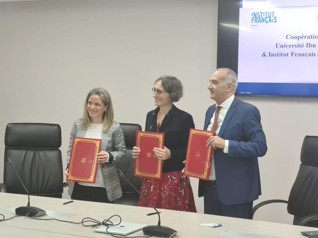 تم اليوم 26 أبريل 2022 بمدينة الابتكار سوس ماسة توقيع اتفاقية شراكة وتعاون بين جامعة ابن زهر والمعهد الفرنسي بالمغرب في مجالات الخبرة البيداغوجية وهندسة التكوينات، والمعالجة والخبرة اللغوية، وتشجيع الإشهاد في اللغة الفرنسية، وتطوير التعاون الجامعي، ومصاحبة حركية الطلبة، وتطوير الثقافة العلمية والتقنية، ثم تطوير الأنشطة الثقافية والفنية.