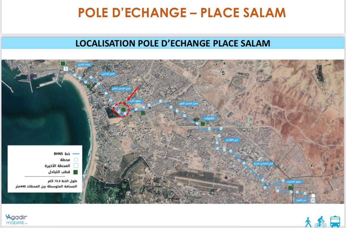 أعطى المجلس الجماعي لأكادير انطلاقة أشغال تهيئة وتأهيل ساحة السلام على مساحة تفوق 12000 متر مربع، والتي ستحتضن محطة لسيارات الأجرة بصنفيها، ومحطة للحافلات. ويندرج هذا المشروع ضمن مشاريع برنامج التهيئة الحضرية لأكادير 2020-2024، بحيث ستتحول ساحة “البطوار سابقا” إلى محطة تبادل مهمة بقلب مدينة أكادير.