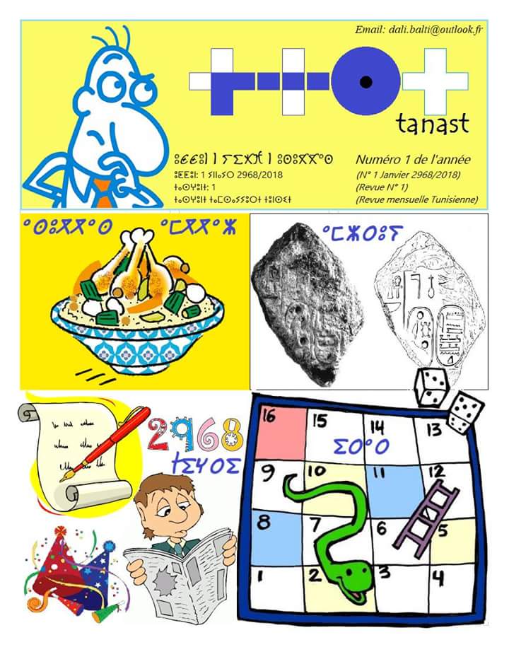 تم اطلاق أول مجلة أمازيغية تونسية في عددها الأول بتاريخ 1 جانفي 2018 وهي مجلة الكترونية موجهة للأمازيغ وكل المهتمين بالثقافة الأمازيغية تصدر شهريا بالتيفيناغ والحروف اللاتينية وكذلك مترجمة للغة الفرنسية حتى يتسنى للجميع الاستفادة من محتواها تهدف أساسا إلى نشر الثقافة الأمازيغية وتوعية مختلف الشرائح المجتمعية بالهوية الأمازيغية وإعادة الاعتبار لتاريخ تونس وشمال افريقيا في حقبته الامازيغية والتعريف بالمخزون الحضاري المادي واللامادي إضافة إلى نشر حروف التيفيناغ واللغة الأمازيغية كما تهدف أيضا إلى تشجيع الناشئة على المطالعة والكتابة باللغة الأم وتعلّم المصطلحات الجديدة ومختلف اللهجات المثمّنة للغة الأمازيغية بهدف الاعتزاز بالهوية الأصلية لسكان شمال إفريقيا ودعم روح المواطنة والانتماء إلى هذه الأرض الطيبة كما تهتم أيضا بنشر أخبار الأمازيغ في العالم والأنشطة الثقافية كما تتراوح أركانها بين ماهو ثقافي وعلمي وتاريخي وحضاري وفكري