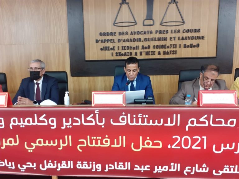 دشن وزير العدل صباح اليوم الجمعة 26 مارس الجاري، الافتتاح الرسمي للمركب الإداري الجديد لهيئة المحامين لدى محاكم الاستئناف بأكادير وكلميم والعيون بحضور شخصيات قضائية ومهنية وإدارية وحقوقية وطنية ومحلية.