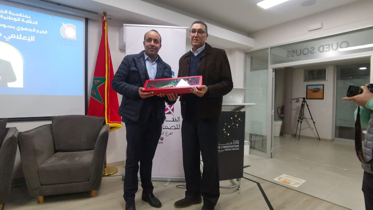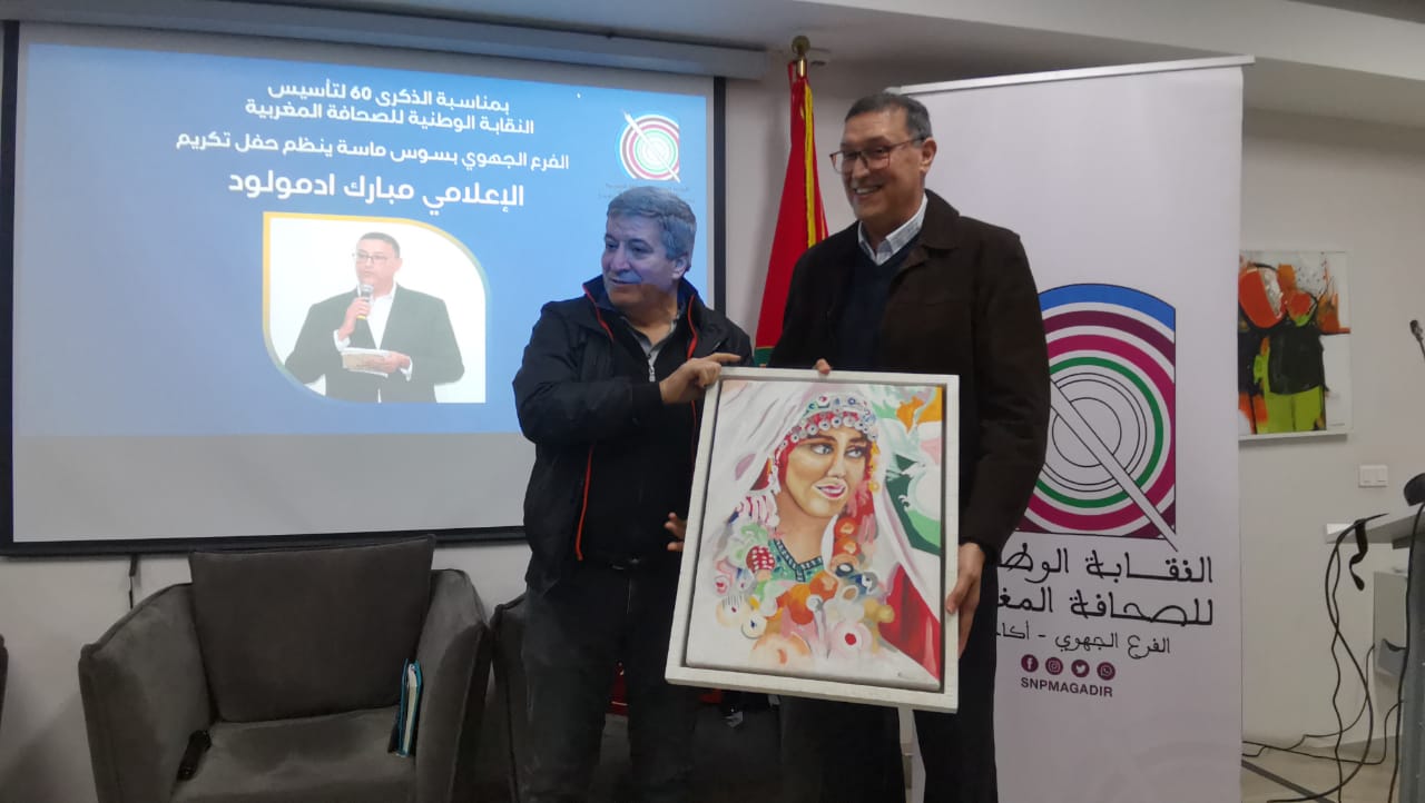 نظمت النقابة الوطنية للصحافة المغربية الفرع الجهوي لسوس ماسة،حفل تكريمي للإعلامي مبارك ادمولود يوم الجمعة 17 فبراير الجاري بمدينة الابتكار باكادير،وذلك بمناسبة الذكرى 60 لناسبس النقابة الوطنية للصحافة المغربية ،بحضور عدد من المثقفين ومنتخبين وأساتذة جامعيين وفنانين واعلاميين ،الذين اعتبروا هذه الالتفاتة حميدة تنم عن نبل عميق في التعامل مع الأسرة الاعلامية بجهة سوس ماسة.