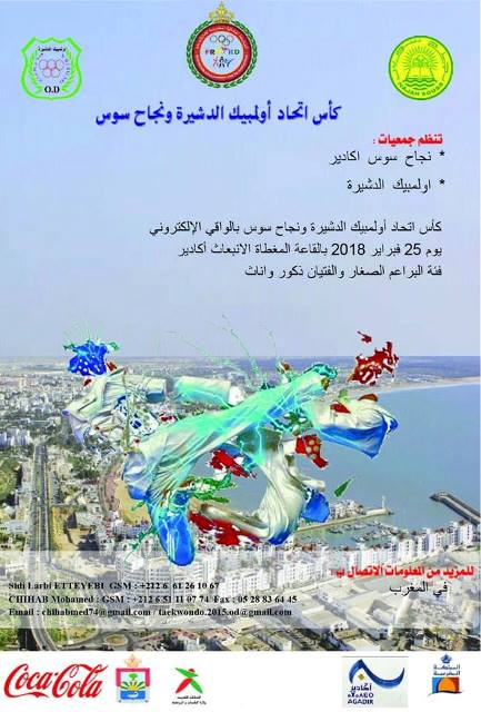 تحتضن القاعة المغطاة لمدينة اكادير يوم 25 فبراير الجاري فعاليات النسخة الثانية لكاس اتحاد اولمبيك الدشيرة ونجاح سوس للتيكواندو في فئة الصغار والفتيان والشبان.