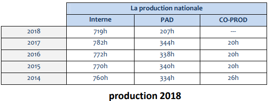 ويؤكد التقرير أن سنة 2018 عرفت نقصا كبيرة في عدد ساعات الإنتاج بالقناة الأمازيغية مقارنة مع السنوات الفارطة. وهذا ما يوضحه الجدول التالي الوارد في الصفحة 64 من التقرير.