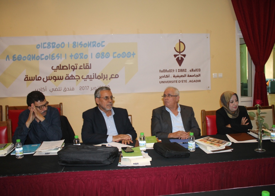 في خطوة استحسنها الجميع، نظمت جمعية الجامعة الصيفية لأكادير لقاء تواصليا مع برلمانيي جهة سوس ماسة لمناقشة القوانين التنظيمية المتعلقة بتفعيل الطابع الرسمي للأمازيغية وإنشاء المجلس الوطني للغات و الثقافة المغربية. وفي كلمته الافتتاحية أكد السيد الحسين بويعقوبي، رئيس الجامعة الصيفية،التي تستعد للاحتفال بذكرى تأسيسها الأربعون في 2019، على أهمية هذا اللقاء باعتباره يعزز جسور التواصل و الحوار بين المجتمع المدني ونواب الشعب الذين يحملون هموم هذا الأخير لطرحها في البرلمان وإيجاد حلول تستجيب لتطلعات الشعب. وفي هذا الاتجاه يأتي هذا اللقاء التواصلي لوضع نواب جهة سوس ماسة لإثارة الانتباه الى أهم مؤاخذات الحركة الجمعوية الأمازيغية على القانونين التنظيميين المتعلقين بتفعيل الطابع الرسمي للأمازيغية و إنشاء المجلس الوطني للغات و الثقافة المغربية الذين سيناقشان في البرلمان للمصادقة عليهما. وقد بين الأستاذ رشيد الحاحي أهم هذه المؤاخذات والاقتراحات البديلة في مداخلة لخصت أهم محاور المذكرة التي أعدتها الجامعة الصيفية بشراكة مع النسيج الجمعوي الأمازيغي في لقاء بلفاع. ومن جهته ركز الأستاذ التيجاني الهمزاوي على مختلف القوانين التي يجب أن تتغير كإجراء طبيعي بعد الاعتراف بالأمازيغية لغة رسمية في الدستور المغربي.