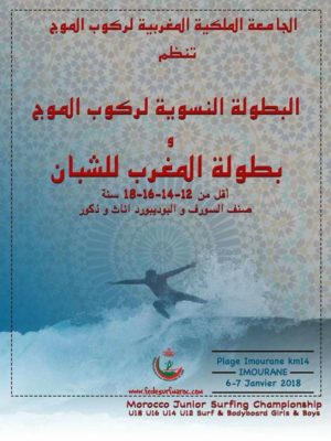 تنطلق بشاطيء ايموران على بعد 14 كلم من مدينة اكادير في اتجاه مدينة الصويرة فعاليات البطولة البطولة النسوية لركوب الموج وبطولة المغرب للشبان من 12 الى 18 سنة في صنف السورف والبوديبورد اناثا وذكورا وذلك يومي 6 و7 يناير 2017 وتشارك في هذه التظاهرة عدة فرق من مختلف جهات المغرب والمنضوية تحت لواء الجامعة