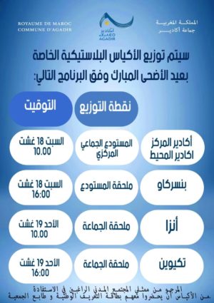 شرعت الجماعة الترابية لاكادير منذ صباح اليوم في توزيع الاكياس البلاستيكية على الجمعيات المنتمية للاحياء لتوزيعها على الساكنة يوم العيد تفاديا لطرح النفايات على الازقة والشوارع.