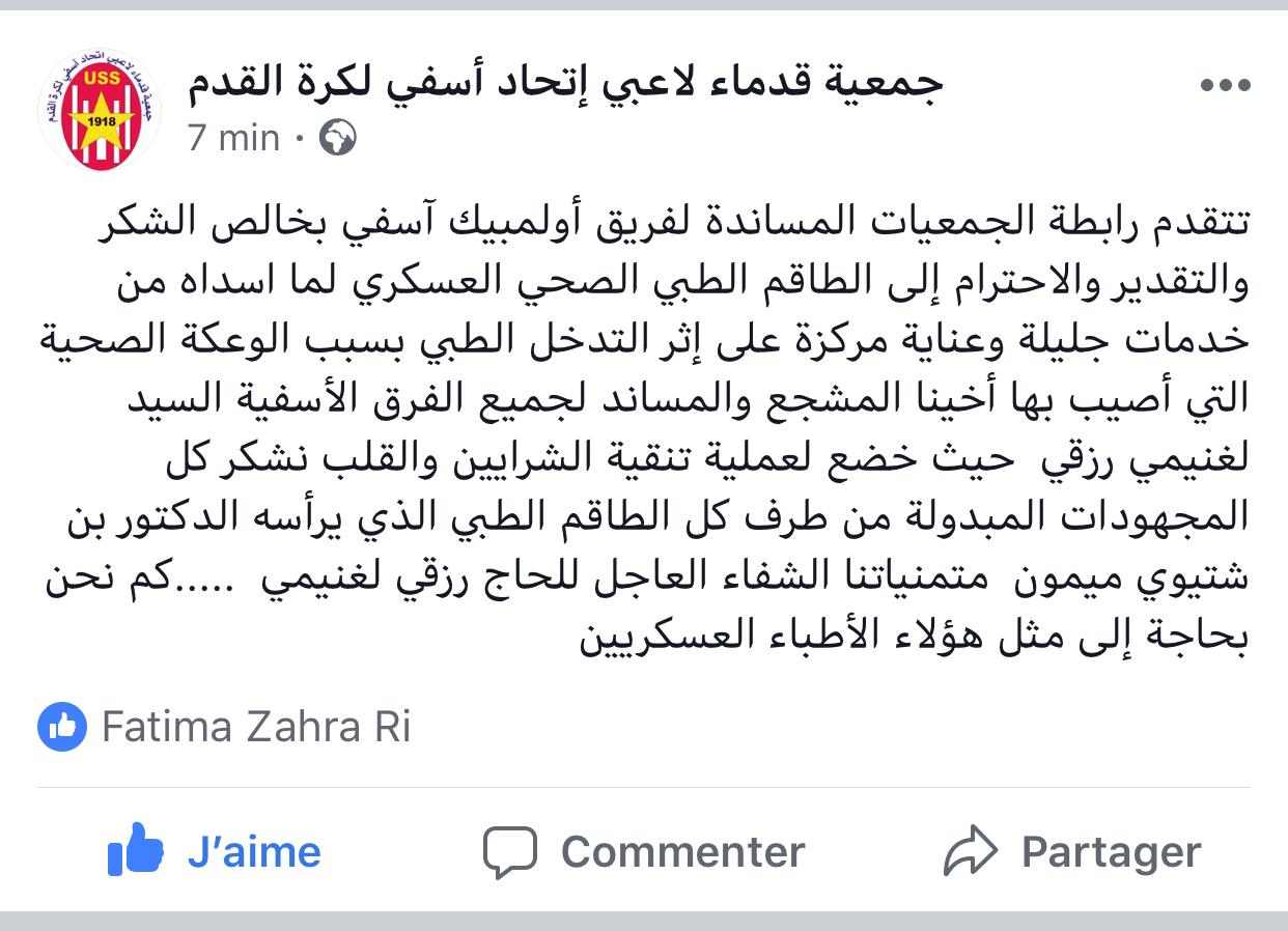 وبمناسبة العناية الفائقة التي تم ايلاؤها للحاج لغنيمي رزقي الذي يتابع علاجه من مرض في القلب تحت الإشراف المباشر للدكتور الشتيوي تتقدم الجمعية بخالص تشكرلتها للطاقمين الطبي والصحي بجميع أقسام هذا المستشفى تحت الإشراف المباشر لمدير المستشفى على المجهودات المبذولة من أجل الرفع من مستوى المجال الصحي بالمنطقة والتي تؤكد على أن ما يقوم به العاملون والعاملات بهذا المستشفى يؤكد بالملموس وعلى أرض الواقع خطابات جلالة الملك محمد السادس نصره الله التي تركز على الاعتناء بالمواطن وتقديم له الخدمات الصحية في مستوى لائق .