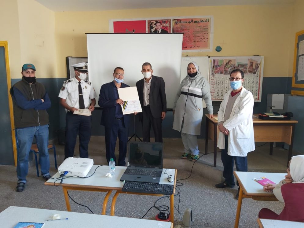 وسلمت في الاخير شواهد شكر وعرفان للمؤطر الضابط سمير اورحو والسيد المنسق الاقليمي للحملة ذ.اوخراز عبدالرحيم الذي ساهم بدوره في توعية التلاميذ وتدكيرهم ببعض واجباتهم داعيا الجميع الى احترام التوجيهات الصحية وتطبيق البروتكول الصحي للوقاية من وباء كوفيد19.