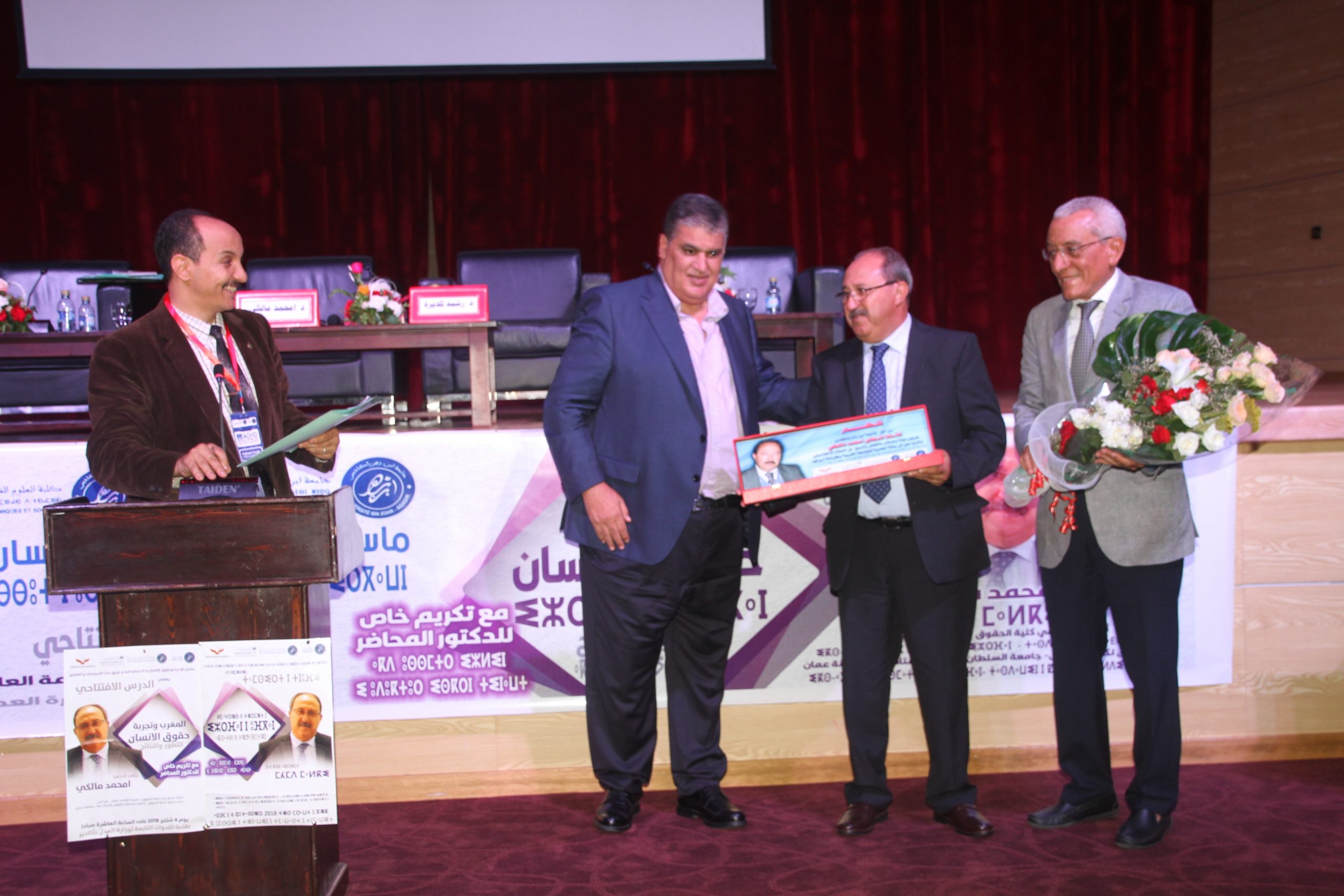 في البداية تفضل الدكتور رشيد كديرة المنسق البيداغوجي لماستر الادارة،حقوق الانسان ، الديمقراطية ورئيس فريق بحث السياسات والمعايير بجامعة ابن زهر بصفته من الجهة المنظمة فقدم نبذة وجيزة عن الدكتور مالكي الاستاذ السابق في كلية الحقوق بجامعة القاضي عياض بمراكش وعميد سابق لكلية الحقوق والاستاذ بجامعة السلطان قابوس بسلطنة عمان .