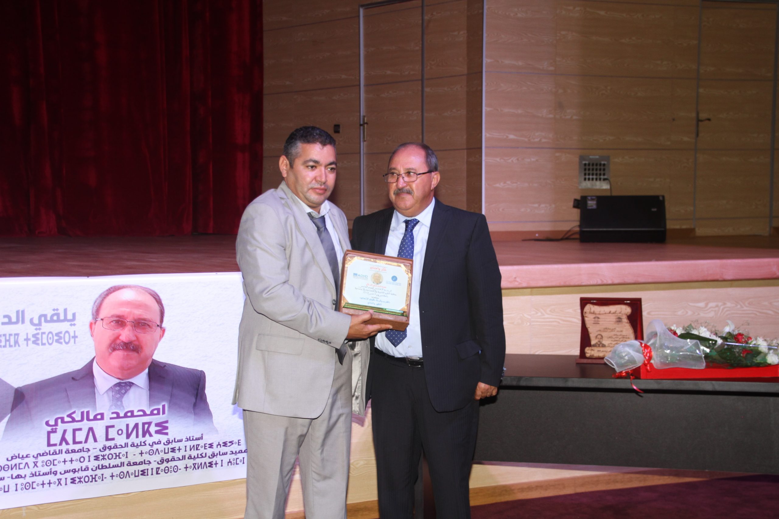 وفي الاخير قيلت كلمات في حق المحتفى به نوهت بخصاله وطريقته البيداغوجية في التدريس وتعامله مع القضايا وانسانيته ومواكبته لطلبته في الكلية من طرف الطلبة الباحثين والذين درسوا عند الاستاذ في الكلية ورئيس جامعة ابن زهر عمر حلي الذي صاحبه مايربو عن عشرين سنة والدكتور رشيد كديرة وكلمة باسم اساتذة جامعة القاضي عياض وكلمة باسم اصدقاء الدكتور امحمد مالكي وتسلم تذكارات وهدايا من طرف المنظمين وأخذت صورا له مع الحضور.
