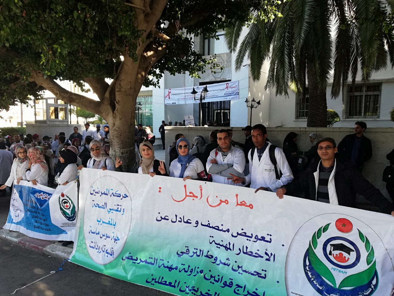 نظمت حركة الممرضين وتقنيي الصحة بالمغرب يوم السبت 10 نوفمبر 2018 بشوارع الرباط مسيرة وطنية بيضاء حاشدة جمعت ازيد من 3000 ممرض و ممرضة حجوا اليها من كل جهات المملكة مطالبين بانصافهم في منحة التعويض عن الاخطار المهنية.