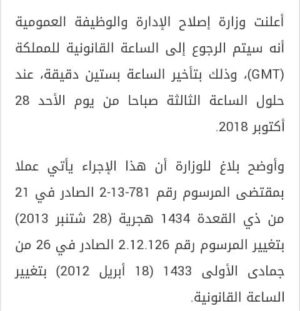 الرجوع الى الساعة القانونية للمملكة المغربية