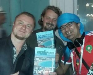 بامكانياته الخاصة وصل المشجع المعروف والغيور على الامازيغية ومدينة اكادير،الصادق ازنزار الى روسيا لتشجيع الفريق المغربي كعادته والترويج في نفس الوقت لمدينة اكادير سياحا عبر توزيع بطاقات بريدية وملصقات وكتيبات تعرف بالمدينة حيث قام بتوزيعها على سكان المدينة والزوار موضحا لهم جميع الجوانب التي يمكن ان تجلبهم لاكادير.وكان يقابل بالترحاب والانفعال مع تواصله معهم.