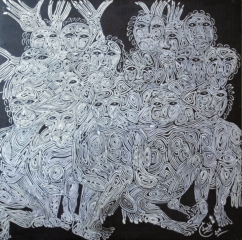 كل لوحاتي سيدات يعانين في دواليب قهر المجتمع التقليدي لأداور المرأة، انها تتوارى للخلف للعيش في السواد حيث يأكل أطرافها النمل الأسود، وبعيدا عن الانوار في أماكن أخرى أكثر قتامة.
