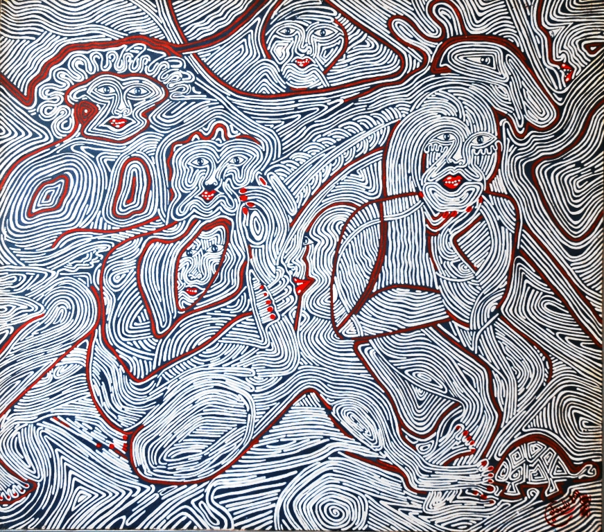 الخوف والنمل والخطوط الكرافيكية المتموجة المتتالية ترسم ملامح تراجيدية لنساء مقهورات الذوات في مجتمع يأكل اجسادهن النحيفة نمل ونمل… هي أعمال تختزل مفهوم الغرابة وتخترق بواطن الخوف.