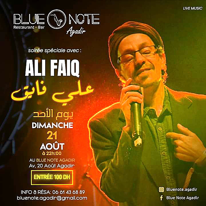 ومند افتتاحه قدم مطعم blue note agadir عروض لعدد من الفنانين، يشاركهم صاحبه بمقدمات من أغانيه الرائعة، آخر هذه العروض، لقاء ساهر مع الفنان المجدد لأغاني الروايس المتألق دائما الفنان “علي فايق” الذي أطرب الحاضرين بمجموعة من الأغاني الخالدة رغم وعكته الصحية.