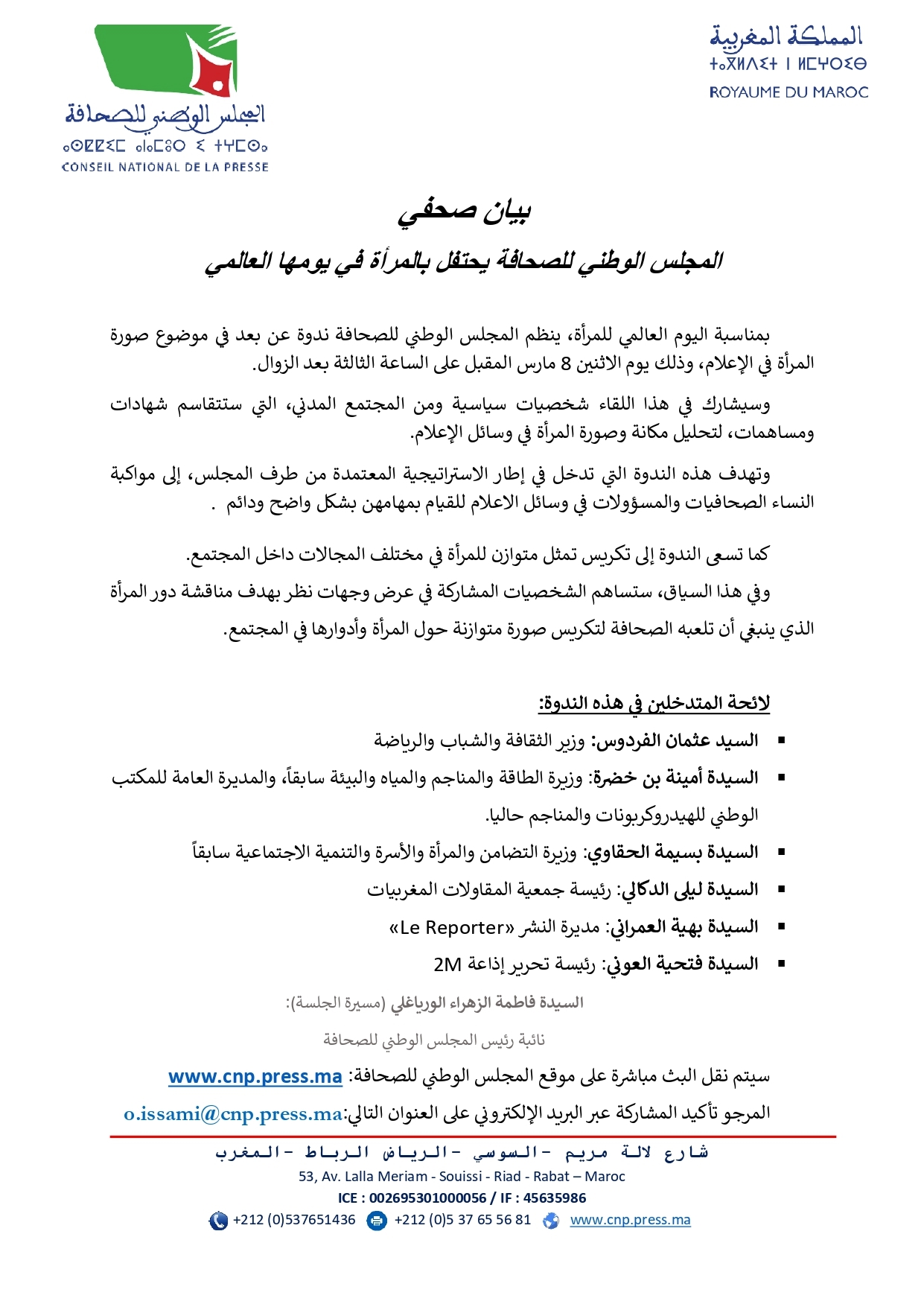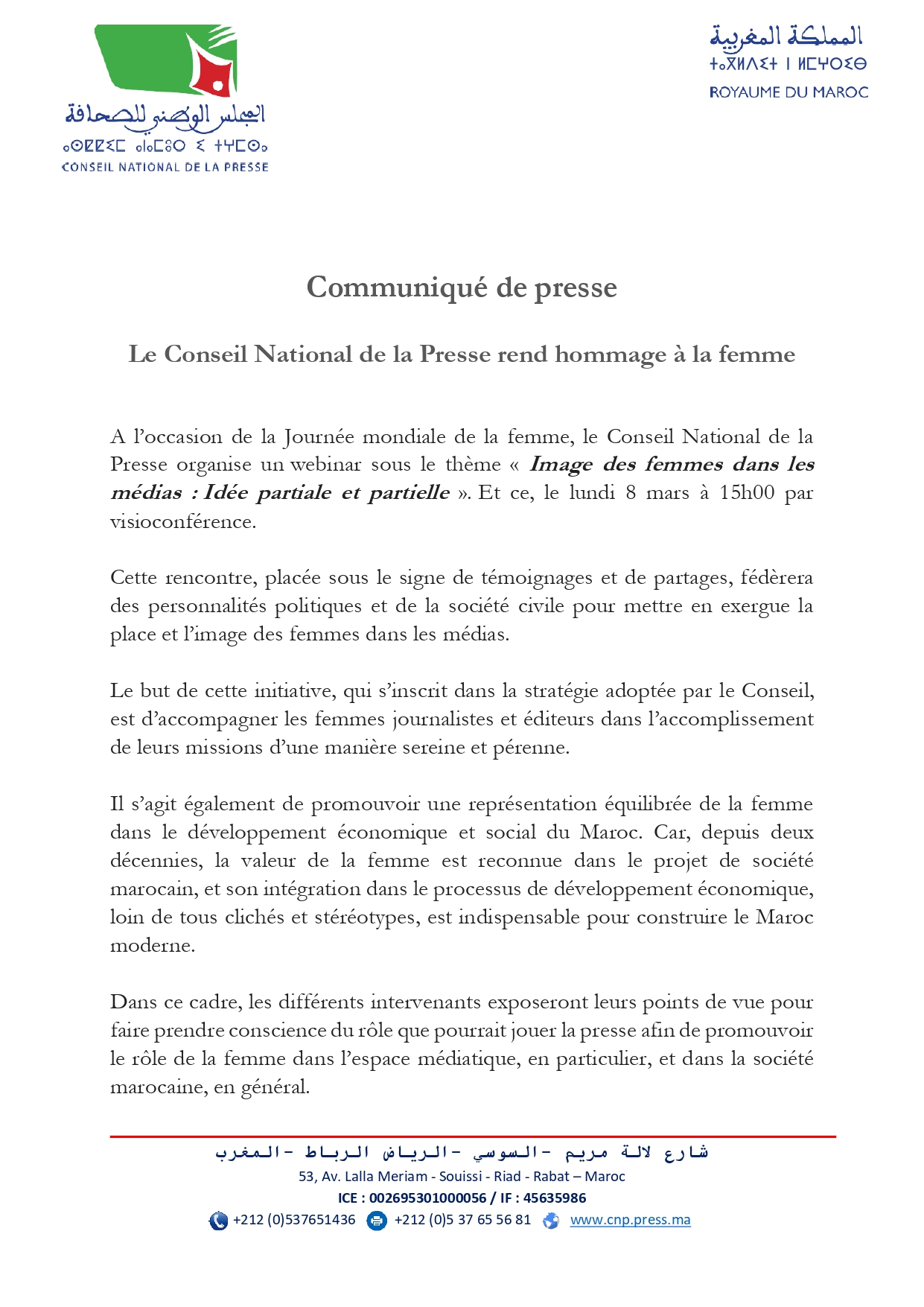المجلس الوطني للصحافة يحتفل بالمرأة في يومها العالمي بندوة عن بعد