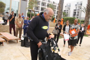 ومن جانبه قدم السيد محمد طه المدير التقني للجامعة عرضا هاما ابرز فيه مختلف الجوانب المتعلقة بهذه الرياضة و المواقع الموجودة باكادير والجهة والموارد المالية التي تذرها على العاملين فيها عبر العالم والقوانين المؤطرة لها وكيفية جعلها رياضة تستقطب السياح من كل انحاء العالم كما قدم عرضا تطبيقيا على مسبح الفندق بين فيه جميع التقنيات المستعملة في الغوص