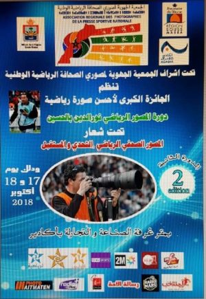 تقام الجائزة الكبرى لاحسن صورة رياضية يومي 17 و18 اكتوبر 2018  بغرفة التجارة والصناعة والخدمات باكادير تحت شعار:المصور الصحفي الرياضي: التحدي والمستقبل وتحمل دورة المصور الرياضي نور الدين بالحسين.