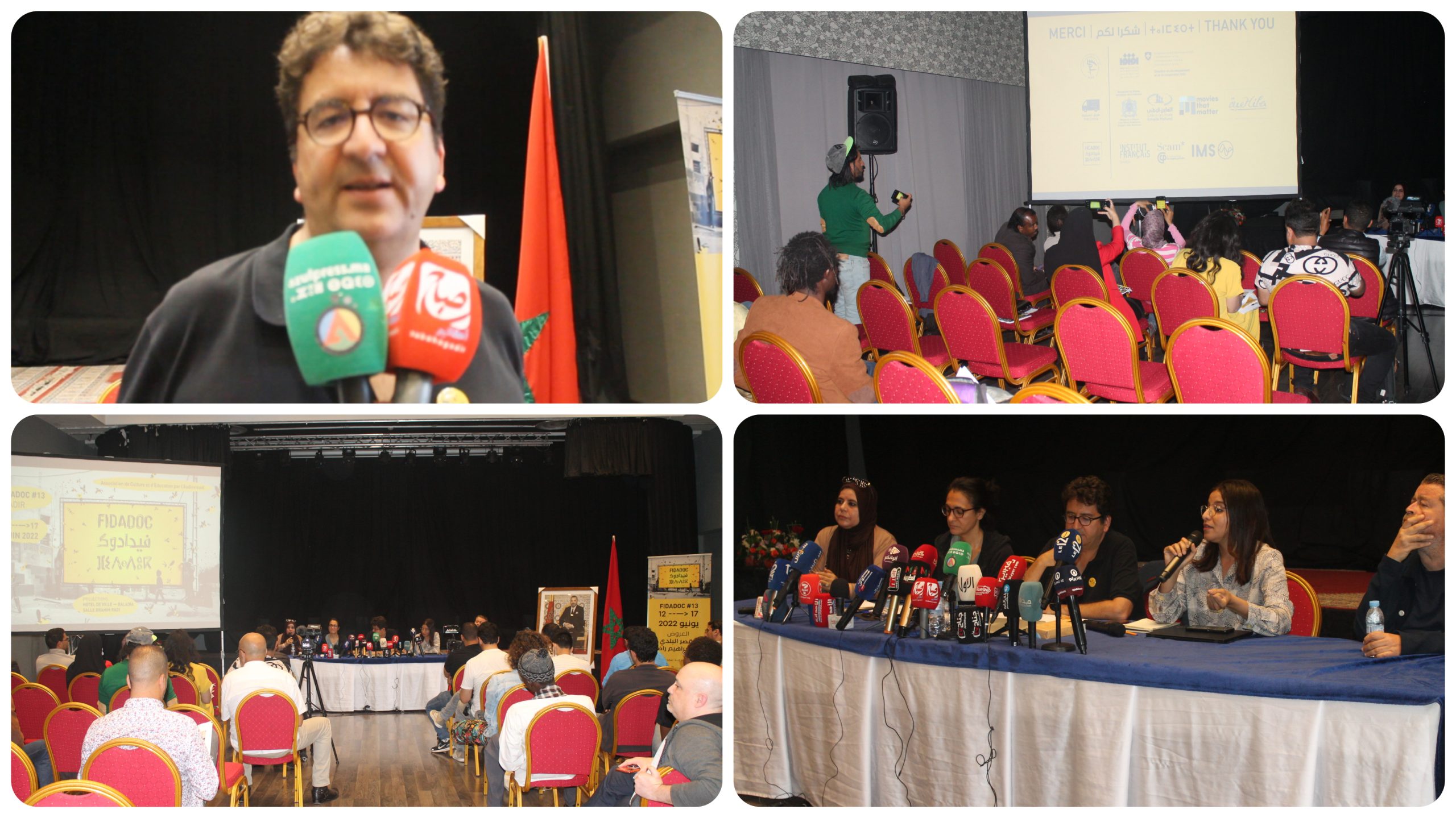 عقدت مساء يوم الاربعاء 08 يونيو 2022 باحد فنادق مدينة اكادير الندوة الصحفية حول مستجدات احتضان عاصمة سوس للدورة 13 لفعالیات الدورة الثالثة عشر للمھرجان الدولي للشریط الوثائقي بأكادیر (فیدادوك) یوم 12 یونیو 2022 حتى 17 منه