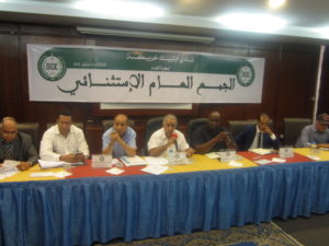 حيث شهد الجمع العام نقاشا ساخنا ومستفيضا وكان على فوهة بركان في الجلسة العامة للجمع العام الاستثنائي وكذا بجلسة التصويت على اللوائح التي ترأس أشغالها المنخرط والأستاذ الجامعي السيد حميد الرهناوي والتي كانت مقدمة فيها لائحتان الأولى وعدد أفرادها تسعة، يترأسها السيد الحبيب الكنوزي، والثانية مذيلة ب 15 توقيعا للمنخرطين يترأسها السيد نزار السكتاني.