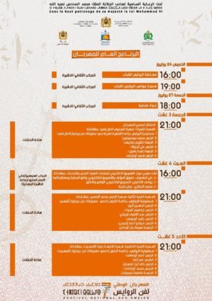 ينطلق المهرجان الوطني السابع لفن الروايس يوم 3 غشت 2018 بالدشيرة الجهادية وفيما يلي برنامج الدورة: