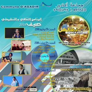 انطلقت سهرات صيف اكادير 2018 بساحة الوحدة التي تنظمها الجماعة الحضرية لاكادير لتنشيط المدينة خلال الصيف وقد اعدت لها برنامجا متميزا ومختلفا كل سبت طيلة شهر غشت: