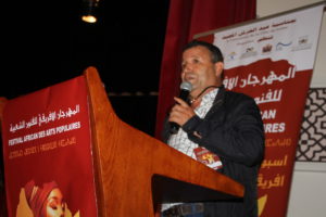 فبعد النشيط الوطني تناول السيد احمد بومهرود الكلمة ونوه بالمستشهرين والجهات المسؤولة التي وضعت الثقة في المهرجان ودعمته اما مادية او معنويا مؤكدا على انه يسير بخطى حثيثة وبدأ يكبر كما يعد الوجهة المميزة للافارقة للتعريف بثقافتهم من موسيقى وملبس واشار ان المنظمين للمهرجان وضعوا دائما صلب اعينهم القضية الوطنية ودافعوا عنها بقوة وربطوها بالبعد الافريقي.