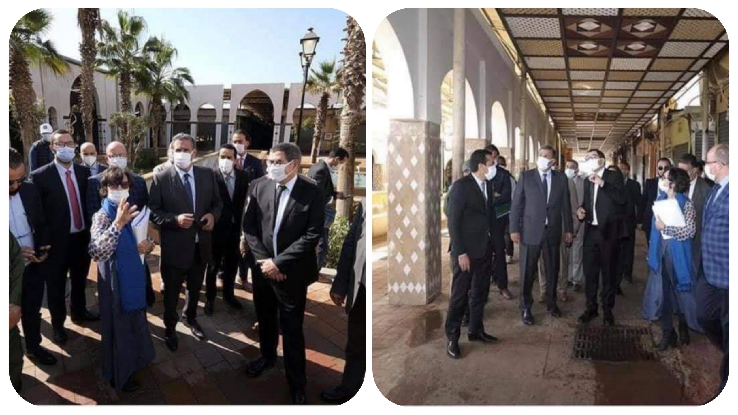 حيث قام الوفد يتقدمهم عزيز اخنوش وبعض الأطر التقنية، بجولات ميدانية للوقوف على حالة تقدم أشغال مشروع “تأهيل سوق الأحد” وتهيئته و ترميم واصلاح مرافقه، و كذلك الممرات الخاصة بالسوق..