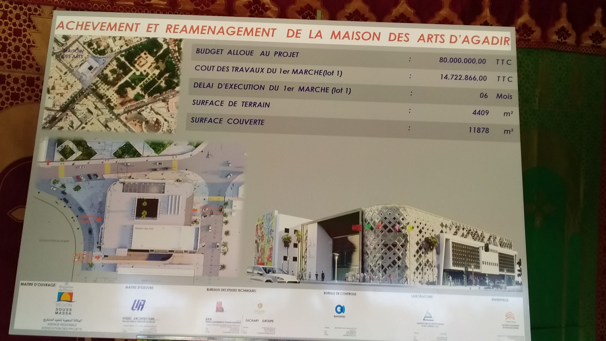 وقد قرر، في ختام هذه الدراسات المختلفة، البدء في تنفيذ المشروع على أشطر متعددة، يتعلق أولها “بأشغال استكمال وإعادة تهيئة دار الفنون بأكادير: “الأشغال الكبرى، منع التسربات والهيكل المعدني”، باعتماد إجمالي قدره أزيد من 72,14 مليون درهم.