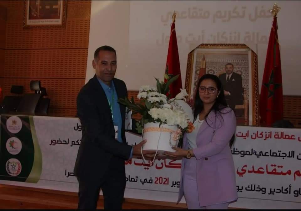 نظمت جمعية الأعمال الإجتماعية لموظفي عمالة إنزكان ايت ملول  امس يوم السبت 23 اكتوبر 2021 بنادي الفلاح، حفلا تكريميا للموظفين الذين أُحيلوا على التقاعد، بعد بلوغهم حد السن القانونية للعمل، والذين أعطوا الكثير لتطوير مؤسسة الإدارة الترابية على صعيد عمالة انزكان أيت ملول، وذلك بحضور السيد الكاتب العام لعمالة إنزكان أيت ملول والسيدة مريم الركراكي نائبة رئيس مجلس عمالة انزكان أيت ملول واطر ادارية من العمالة.