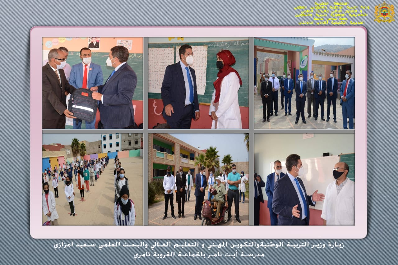 إثر ذلك، قام وزير التربية الوطنية والتكوين المهني والتعليم العالي والبحث العلمي بزيارة تفقدية لمدرسة أيت تامر، التابعة للجماعة الترابية “التامري” شمال مدينة أكادير، حيث اطلع على الكيفية التي تم بها تنزيل إجراءات الدخول المدرسي الجديد على مستوى العالم القروي.